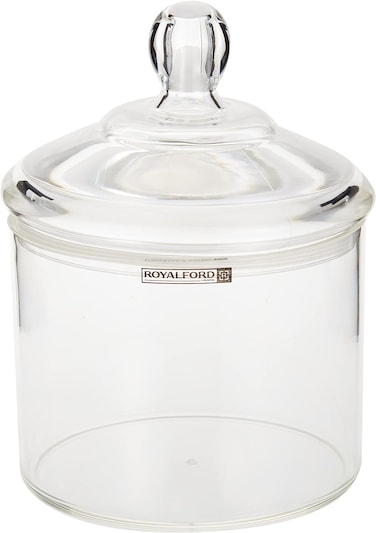 - <li>TRANSPARENT MATERIAL – This Royalford Storage jar has a transparent material that will provide a perfect view to see the things placed in the tank need not bother turning over.<li>LIGHTWEIGHT AND DURABLE – You don’t have to worry about cracks or chips on the surface, for they are made with only the high-quality of durable material. The lightweight feel also lessens any possible strain on your wrists.<li>PERFECT FOR STORAGE - Perfect for storing sugar, tea packets, coffee, spices, and the like, this piece is suitable for home use and even for coffee shops, hotels, and restaurants. The lid allows for an air-tight seal, leaving contents fresh and safe from exposure to moisture, heat, and bugs. The lightweight and durable material feels just right for handling and rests perfectly on the grip of your hands. The wide base at the bottom ensures stability and balance, avoiding spillage of contents. This kitchen canister makes a charming and classy addition to your countertop or table, especially when you are entertaining guests.<li>STRONG AIR TIGHTNESS, 1000ML LARGE CAPACITY – This Large size jar has an airtight design that keeps the content airtight and fresh. This jar is ideal for food that is crispy or easy to get spoil when kept in the air like chips, biscuits, dry fruits, spices, and more.<li>WIDE MOUTH, FLAT BASE – The container has a wide mouth easy to fill the content without spills and has a broad base that keeps the grip to the container to the floor.