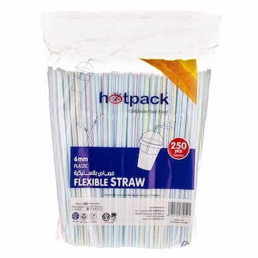 Hotpack - Flexible Plastic Straws, 6mm, 250 Pieces