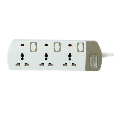 Krypton KNES5143 Extension Socket, 3 Way - Power up multiple devices at the same time with the Krypton extension socket. Made of durable, fire-retardant materials that is safe to use. Highly elastic phosphor bronze material gives the extension socket resistance to fatigue, wear, and corrosion. 3 universal sockets specially designed to accommodate plugs of different designs and types, compatible with multi-country plugs. 3 Way Extension Socket/Strip is damage-resistant and fireproof housing protects circuits from fire, impact or rust, and prevents dents and scratches. The built-in power indicator light & power switches for all ports make it easy to know its ON/OFF mode. Compatible for connecting various devices like washing machine, Iron box, TV, Hair Dryer, Mobile, Drill Machine, Printer, Computer, Refrigerator, Vacuum Cleaner, and more.