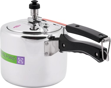 Compact and space-saving, the 3L Royalford RF6540 Aluminium Pressure Cooker with outer lid is ideal for everyday cooking. Designed with strong lugs, this cooker ensures efficient heat transfer for an optimal performance. The nifty whistling weight valve of this cooker allows you to perfectly time your food. Moreover, as this Royalford pressure cooker is made from virgin aluminium, it is durable yet lightweight. Easy grip handle and designed with convenient secure open and lock lid design which prevents unexpected accidents. Premium quality virgin aluminum offers optimal cooking performance. It's encapsulated base heats quickly and spreads heat evenly eliminating hot spots. Safe and easy pressure regulation releases steam away from user when optimal pressure is reached high low and quick release pressure settings available. Also this set includes free rubber gasket and safety valve.It has designed ergonomically for hassle-free cleanup and effortless experience. You can simply wash this cooker using soap and a sponge with plain water. This pressure cooker is ideal for cooking multiple dishes like stews, soup, homemade stocks, rice, biryani, khichdi, pork, beef, chicken and much more and enjoy your favrouite dishes with your family.