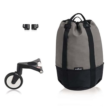 YOYO bag hooks onto the YOYO stroller in seconds and, thanks to its wheel, supports an additional 10 kg (22 lbs) without extra efforts.