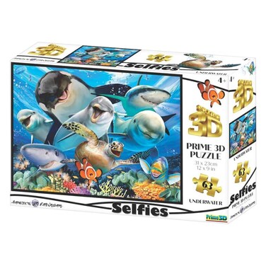 Dive into a world of wonder with the Underwater Selfie puzzle from Prime 3D Ltd. Created by the talented artist Howard Robinson, this 3D jigsaw puzzle brings the vibrant colors and captivating creatures of the ocean to life. With its lenticular design, the image changes as you move, adding an extra element of excitement. Perfect for children aged 4 and up, this 63-piece puzzle challenges young minds while sparking their imagination. Explore the wonders of the deep sea and capture the magic of underwater life with the Underwater Selfie puzzle. Get ready for an adventure like no other!