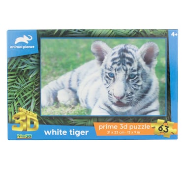Get ready to embark on an exciting adventure with the White Tiger Discovery puzzle from Prime 3D Ltd! This magnificent 3D puzzle is a must-have for animal and puzzle lovers alike, featuring one of the world's most majestic and awe-inspiring creatures - the white tiger. With 63 pieces to put together and a completed size of 12"" x 9"", this puzzle is a fun and challenging activity for kids and adults alike. The stunning design showcases the beauty and power of these big cats, making it perfect for anyone who loves animals and wildlife. Whether you're a puzzle pro or a first-time puzzler, the White Tiger Discovery puzzle is sure to provide hours of entertainment and satisfaction. So what are you waiting for? Add the White Tiger Discovery puzzle to your collection today and experience the thrill and excitement of putting together one of the most stunning and captivating puzzles out there!