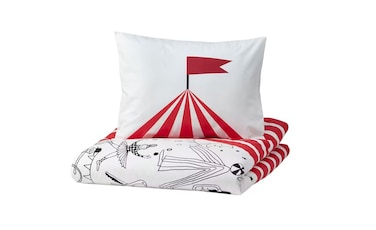 - Generic Duvet Cover And Pillowcase, Circus Pattern Red/White150X200/50X80cm