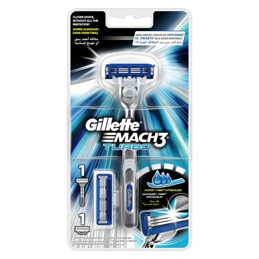 Gillette mach3 turbo men's razor handle and 2 mach 3 turbo blade refills 2 pieces