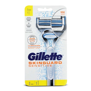 Gillette Skinguard Sensitive Razor Handle With 2 Blades Silver 3 count