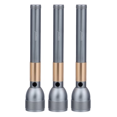 This Geepas family set of 3 LED Torch has a high-intensity light with an LED flashlight that gives bright cool white light which is less harsh and gives you a day-like light appearance. This torch is very much useful in emergency light in case of power failures at your home. It is built-up with a durable extra hard aluminium body which is waterproof, anti-skid, shock resistant, and sustains even rough handling.This torch has an immense wavelength and is capable to reach a long distance with a maximum range of 2000 meters. Comes with a highly durable rechargeable 4000mAh battery that can be charged for up to 7-9hours. This torch will provide you the intensity of light up to 4 hours at a single charge & as you fix the distance of the light beam it automatically provides you the bright light needed to that distance to give you a clear view. Includes 3 sets of a flashlight, switching adaptor, and 3.7V 4000mAh Ni-Cd battery.