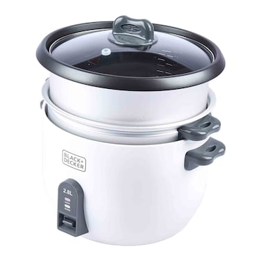 Black & Decker RC2850-B5 Non Stick Rice Cooker With Steamer White 2.5L