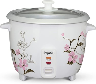 Impex RC 2801 400W 1 Liter automatic electric rice cooker features easy operation with an one key press technology. It comes with an efficient with steam lock glass lid and a plastic handle. Provides temperature protection. Its light indicator shows when the device is in active mode or in passive mode. Toughened glass lid prevents spilling off.
