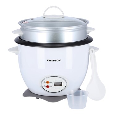 Krypton KNRC5283 1.8 L Rice Cooker with Steamer - Rice Cooker and Steamer is an easy way to cook rice. With a 1.8 L capacity bowl, enough space to cook up to 10 cups of rice, it is useful for larger households who love to cook. The keep warm function allows you to keep your rice warm, ideal for those busy families who find it hard to all sit down together.The main features of Krypton KNRC5283 are 3-IN-1 MULTIPLE FEATURES Cook: With the push of a button, the device starts working and automatically adjusts temperature. Steam: The steam function lets you cook rice healthily while preserving the nutrients. Warm: It can also warm the rice back to their fresh hot state. DURABLE AND TOUGHER OUTER BODY The cooker has an elegant design and a durable body. It has non-slip feet at its base, they keep the pot firmly in place. It has a compact and cute design. It covers less space and does not clutter your kitchen counter. 1.8L LARGE CAPACITY ACCESSORIES This pot has a large capacity of 1.8L. Now you can make large servings for the whole family or deal with sudden guests. It is quick and efficient.