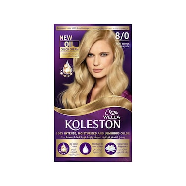 Wella Koleston Permanent Hair Color Cream - Light Blonde 8/0 - 100% Grey Coverage, Oil-Enriched Cream.