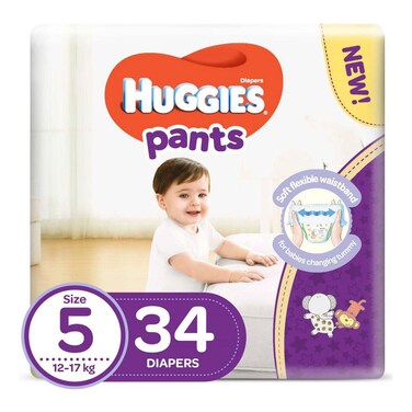 Huggies Extra Care Diaper Pants Size 5 12-17kg Mega Pack White 34 count