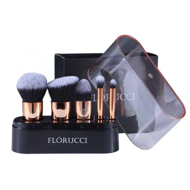 Florucci 5-Piece Professional Makeup Brush Set With Storage Case, Black