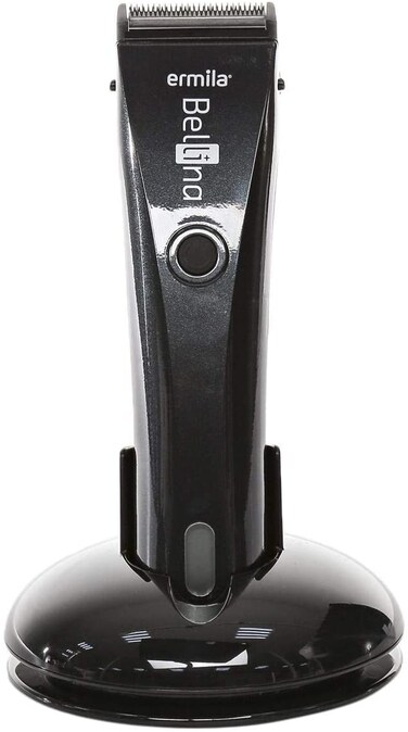 Product Description New New Ermila 1870 Bellissima Black Premium Cordless Hair Trimmer Dual Voltage LITHIUM POWER: Durable and highly efficient lithium ion batteries without memory effect. Up to 90 minutes battery operating time. 60 minutes super quick charge. Up to 3 times longer life-time than conventional batteries. MAGIC BLADE: Stainless steel blade set. Powerful cutting thanks to high-precision grinding technology "Made in Germany". QUICK CHANGE: Quick-release blade set featuring integrated cutting length adjustment 0.7 - 3 mm. Quick change to optional available All-in-One Blade. CONSTANT SPEED: Chip-controlled motor for constant cutting power irrelevant of battery charge level or hair type. ACOUSTIC INFORMATION SYSTEM: Various signal tones for start of charging and complete charge. Acoustic warning to prevent high abrasion (Overload Protection). OPTIC INFORMATION SYSTEM: LCD indicator for battery charge level and charging status. Technical data TYPE Professional cord/cordless hair clipper BLADE SET Interchangeable stainless steel blade-set MAGIC BLADE QUICK-CHANGE BLADE SET TOP BLADE WIDTH 46 mm CUTTING LENGTH 0,7 - 3 mm TYPE OF OPERATION Corded/Rechargeable DRIVE DC motor with sound proofing, approx. 5000 rpm SPEED CONTROL OPERATING VOLTAGE 100-240 V / 50-60 Hz via plug-in transformer OPERATION TIME (BATTERY) Up to 90 min. CHARGING TIME 60 min. Set Contains: Ermila Charm of Creativity Bellina Hair Clipper, Black - Pack of 1