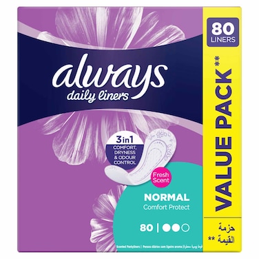 Always Daily Liners Comfort Protect Pantyliners With Fresh Scent Normal 80 Count