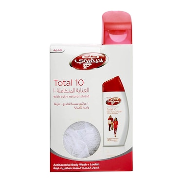Lifebuoy anti-bacterial body wash total 10 + loofah 300 ml