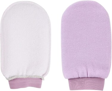 DESCRIPTION Exfoliating Mitt Made Of 100% Viscose Fabric (Natural Fiber) Lavender Helps exfoliate body with only warm water faster and easier than other exfoliators Naturally removes dead skin and impurities and unclogs pores and emerging hair Reduces Strawberry Legs and Keratosis Helps Treat Body Acne Scars Boosts collagen and circulation and removes unwanted old fake tan Helps heal dry skin Loofah is used with warm water only Unisex Fit