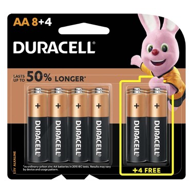 Duracell MN1500 Plus Power Long Lasting Battery 1.5V 8 Pieces + 4 Pieces Gold/Black