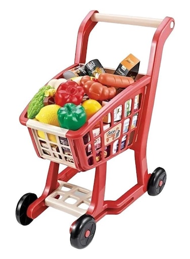Generic Mini Shopping Cart Toy Trolley With Vegetable Fruit Pretend Play Kids Supermarket