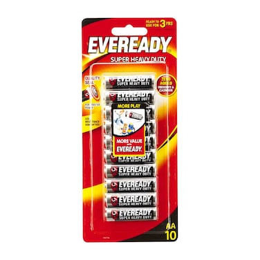 The Eveready Heavy Duty AA Battery 10 PCS is a pack of 10 durable and long-lasting AA batteries.