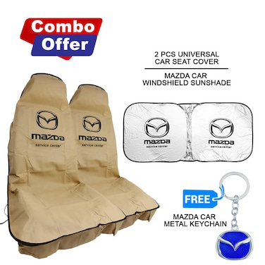 Combo Offer - Buy 2 Pcs MAZDA Car Seat Cover + Windshield Car Sunshade & Get Free MAZDA Metal Car Keychain