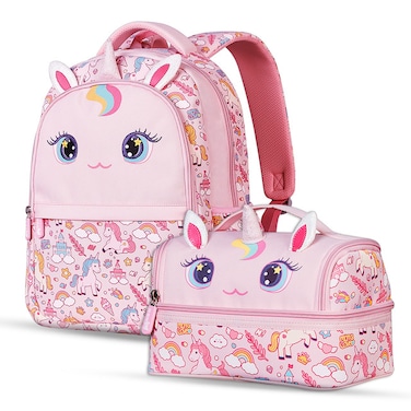 Nohoo Kids 16 Inch School Bag with Lunch Bag Combo Unicorn - Pink