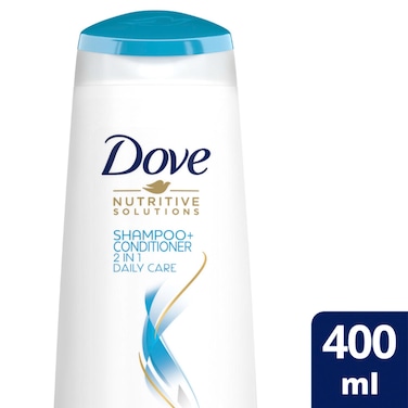 DOVE Shampoo and Conditioner 2 in 1, for dry hair, Daily Care 2in1, nourishing care for up to 100% softer* hair, 400ml