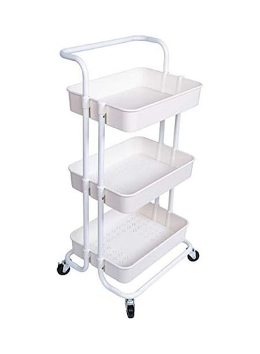 - Almufarrej 3-Tier Utility Cart Rolling Storage Shelf, White, 43X36X87cm
