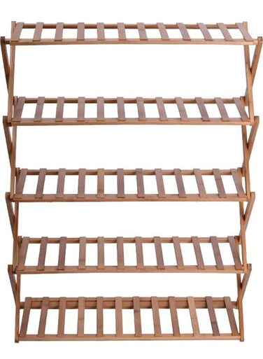 Lingwei 5-Tier Wooden Foldable Shelf Storage Organizer Shoe Rack, Beige, 25X70X88cm