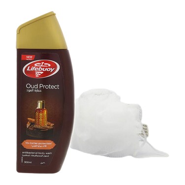 Lifebuoy anti-bacterial body wash oud 300 ml + puff