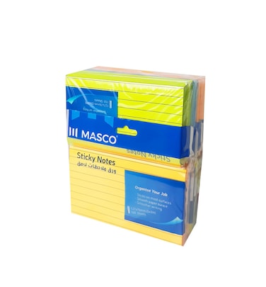 MASCO Smooth Sticky Lined Notes, Pack of 12