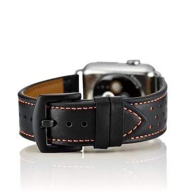Jinya Apple Watch Vogue Leather Band - Black with Orange Dot 42mm&44mm