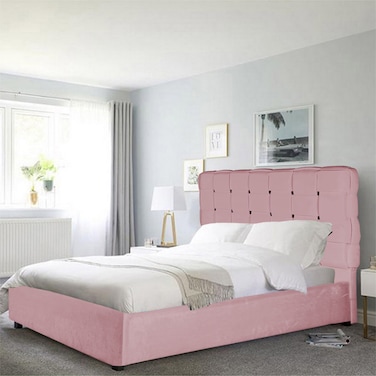 In House Al Shahba Velvet Bed Frame - Single - 200x90 cm - Light Pink