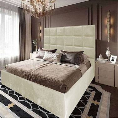 - <p><li>Model: Alex<p><li>Color: Ivory<p><li>Size Name: King<p><li>Size (cm): 200x180<p><li>Headboard height (cm): 140<p><li>Box height (cm): 20<p><li>Number of Boxes: 2<p><li>Material: Velvet<p><li>Wood Type: Swedish Wood