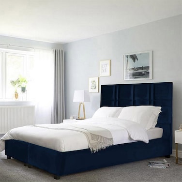 - <p><li>Model: Berlin<p><li>Color: Dark Blue<p><li>Size Name: Single<p><li>Size (cm): 200x100<p><li>Headboard height (cm): 140<p><li>Box height (cm): 20<p><li>Number of Boxes: 1<p><li>Material: Velvet<p><li>Wood Type: Swedish Wood
