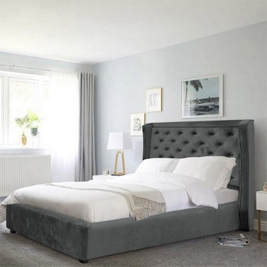 In House Lychee Velvet Bed Frame - Single - 200x120 cm - Dark Gray