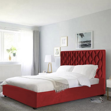 In House Madrid Velvet Bed Frame - Queen - 200x150 cm - Burgundy