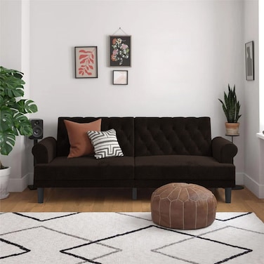 Vintage design with the plush rolled arms and button-tufted details on the back cushions