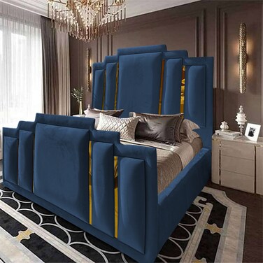 In House Paris Velvet Bed Frame - King - 200x200 cm - Dark Blue