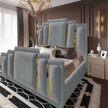 In House Paris Velvet Bed Frame - Queen - 200x140 cm - Gray