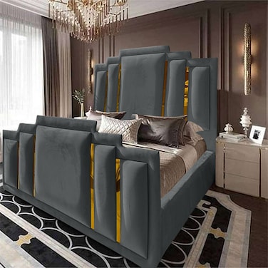 In House Paris Velvet Bed Frame - Single - 200x120 cm - Dark Gray