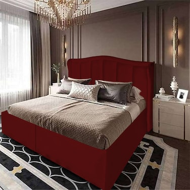 In House Shumt Velvet Bed Frame - Queen - 200x140 cm - Burgundy
