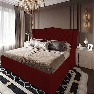 - <p><li>Model: Taj Mahal<p><li>Color: Burgundy<p><li>Size Name: King<p><li>Size (cm): 200x200<p><li>Headboard height (cm): 140<p><li>Box height (cm): 20<p><li>Number of Boxes: 2<p><li>Material: Linen<p><li>Wood Type: Swedish Wood