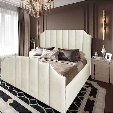 In House Taj Velvet Bed Frame - King - 200x180 cm - Ivory