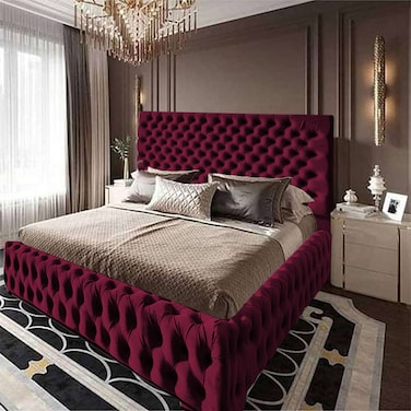 In House Valencia Velvet Bed Frame - King - 200x200 cm - Burgundy