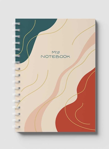 Lowha Spiral Notebook With 60 Sheets And Hard Paper Covers With Abstarct Pastel Lines & Shapes Design, For Jotting Notes And Reminders, For Work, University, School