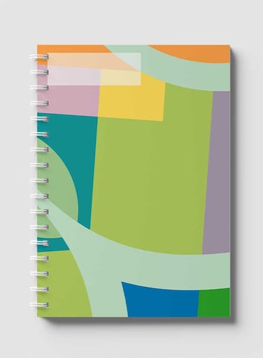 Lowha Spiral Notebook With 60 Sheets And Hard Paper Covers With Abstract Colorful Shapes Design, For Jotting Notes And Reminders, For Work, University, School