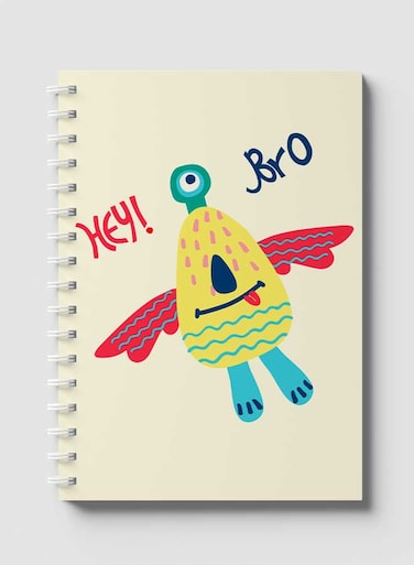 Lowha Spiral Notebook With 60 Sheets And Hard Paper Covers With Hey Bro Monster Design, For Jotting Notes And Reminders, For Work, University, School