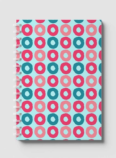 Lowha Spiral Notebook With 60 Sheets And Hard Paper Covers With Seamlesss Circles Design, For Jotting Notes And Reminders, For Work, University, School