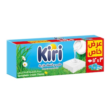 Kiri Spreadable Cream Cheese Squares, 12 Portions × 3 Packs, 36 Portions, 648g